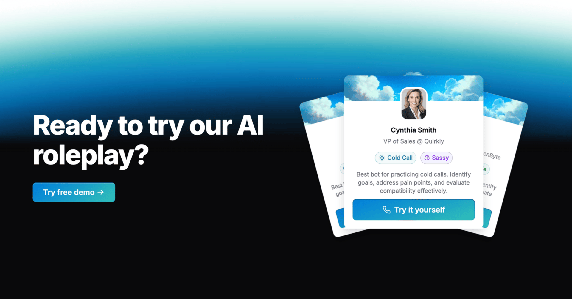 Hyperbound AI analyzes thousands of your sales calls, uncovers why top reps win, and builds AI Sales Roleplays to help you quickly evolve and reinforce your playbooks as you scale.