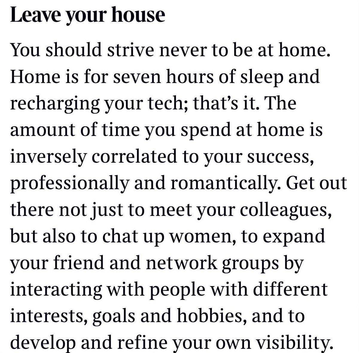 I came across a short passage of life advice from Scott Galloway—one of the leaders I respect most today—and it really resonated with me. I work remotely, with a team that lives halfway across the globe, and go full days inside, sitting at my desk, only venturing outside to walk my dog and go to the gym.