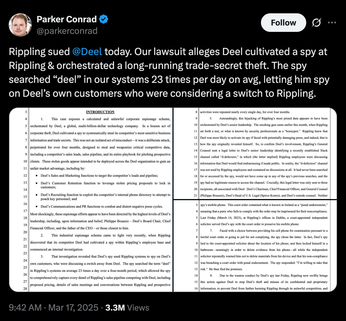 Deel, Rippling & The History Of Corporate Espionage - March, 2025