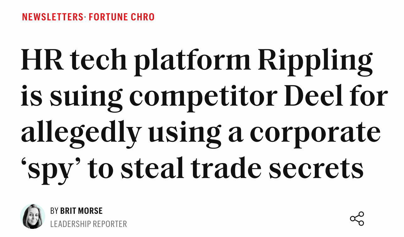 The story of Deel is incomplete without mention of the controversies. In March, I wrote a story on the history of corporate espionage, following the allegations by Rippling CEO Parker Conrad that Deel has an embedded spy inside Rippling.