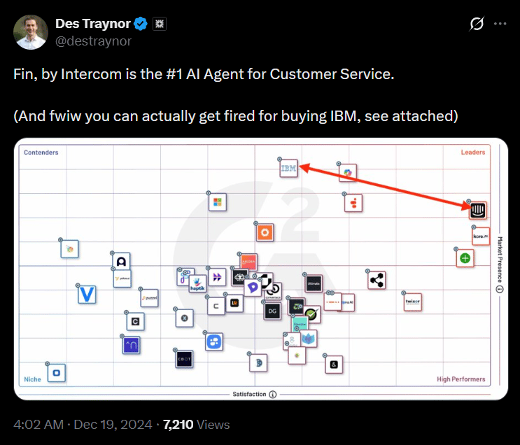 With Fin, though, the game changed. Because of how it works, the size of your company or volume of conversations almost doesn’t matter. You could have 10 million conversations a year, and Fin can handle it. So the ICP has really expanded from small startups to now encompassing the full range of internet businesses doing customer support at any scale.