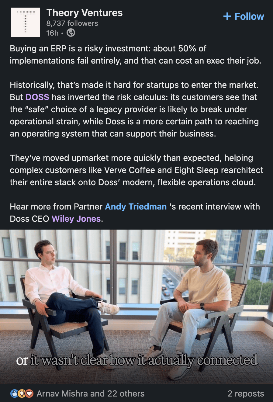 We started DOSS a few years ago because we wanted to focus on a subset of the market that I think is pretty heavily underserved. These are companies that are managing physical operations in some shape or form. A lot of times, people call these product-based companies or inventory-based companies, but really, you can think of it as any business that's buying and selling some kinds of goods and then trying to get those out and distribute them to their end customers in the real world.